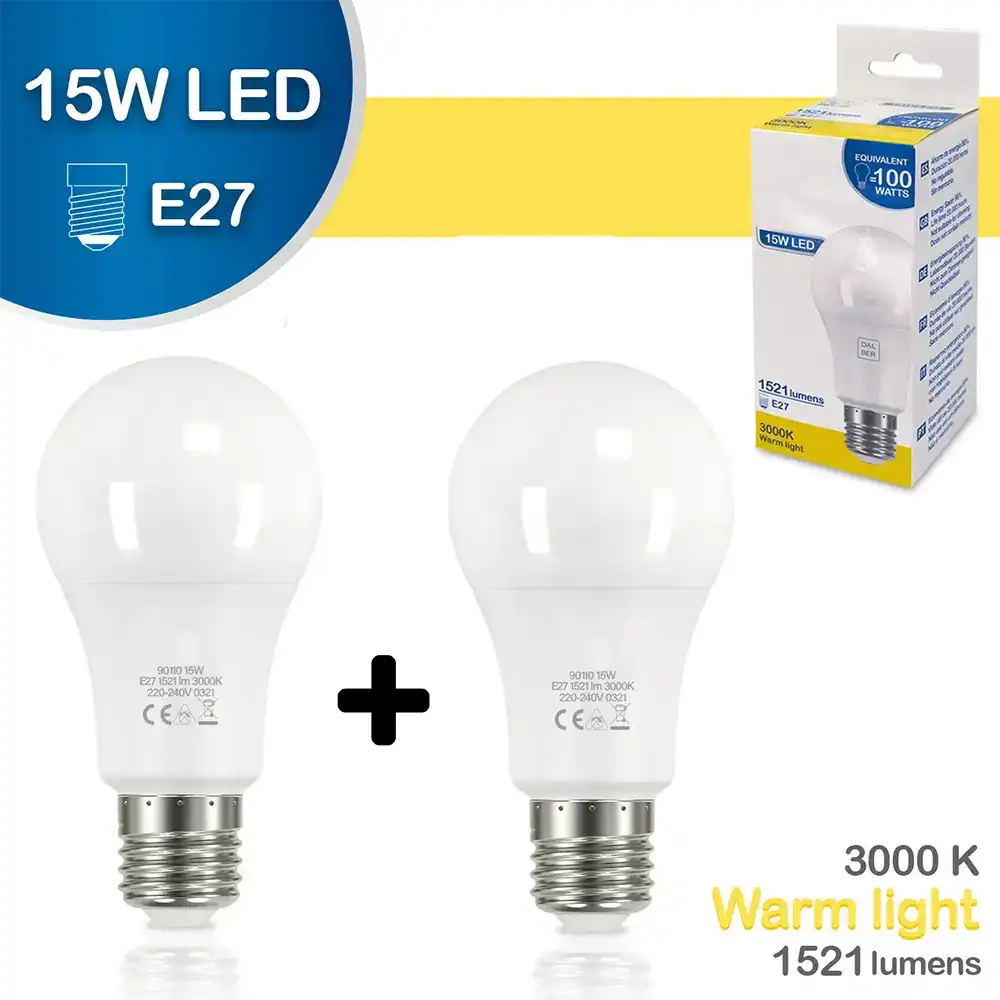 Με τους λαμπτήρες Ε27 15W LED σετ 2 τεμαχίων θα έχετε τα πάντα έτοιμα για να λειτουργήσετε τη νέα πλαφονιέρα μας . Με την τεχνολογία LED, εξασφαλίζεται ο οικονομικός, μακροχρόνιος και ποιοτικός φωτισμός.