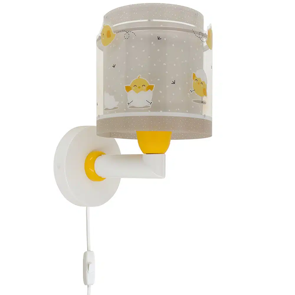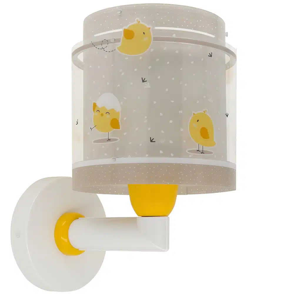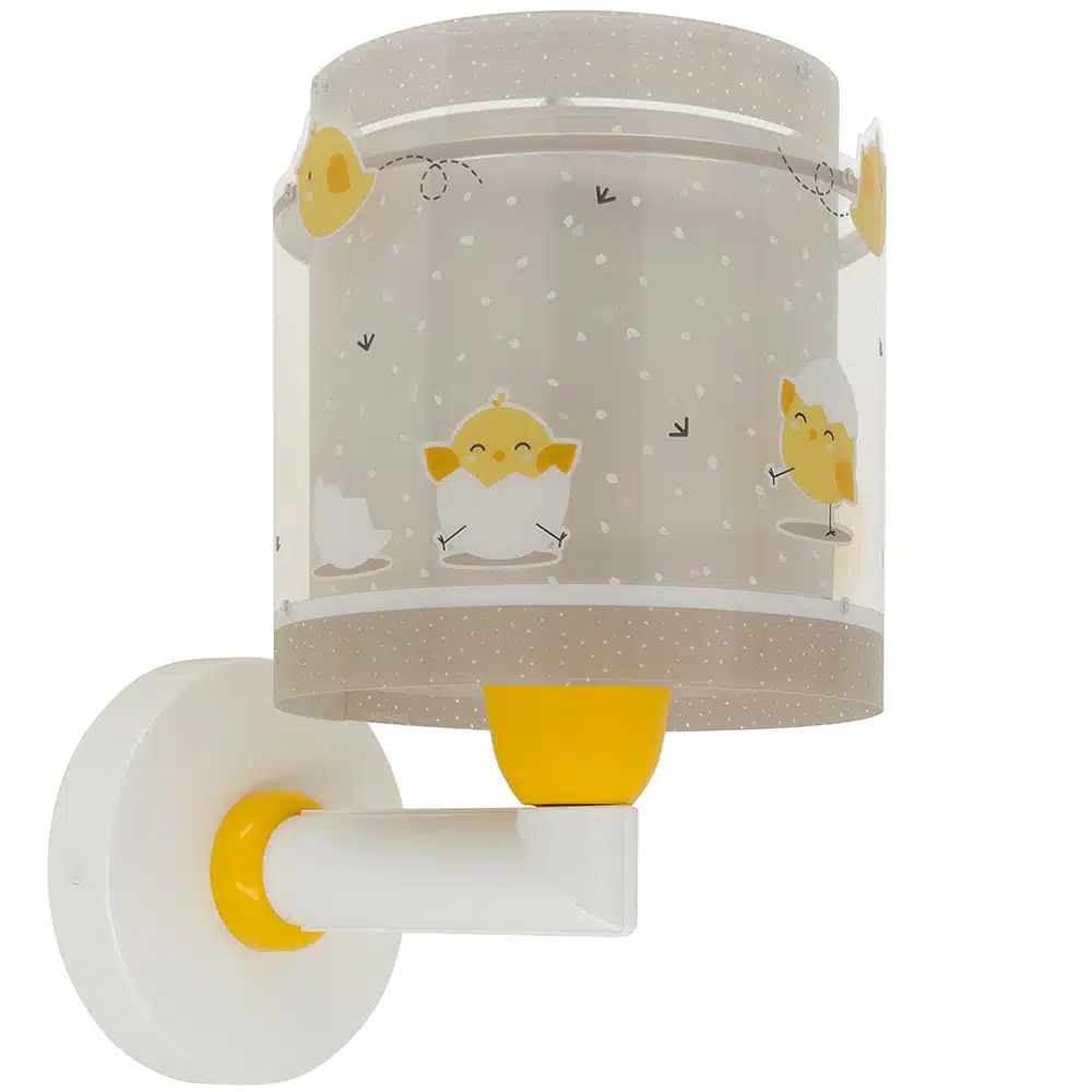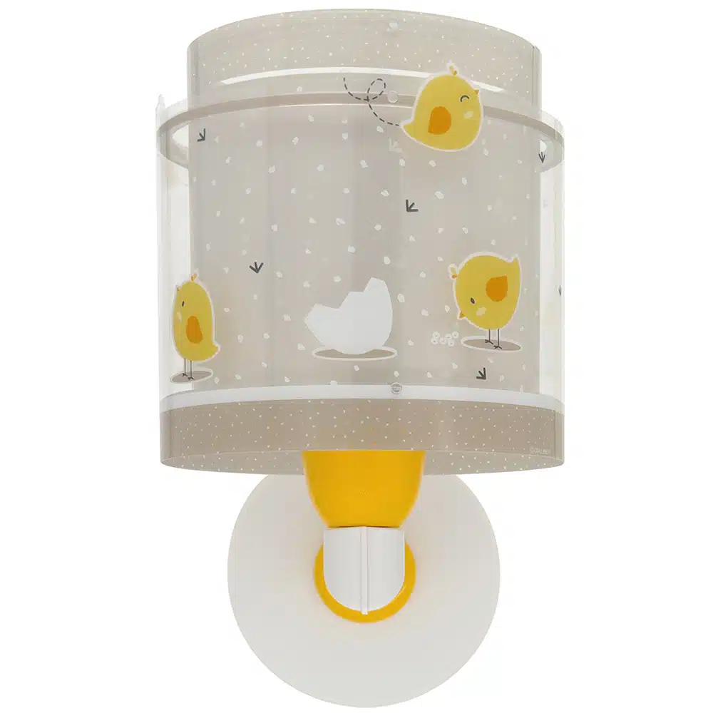 Απλίκα τοίχου με θέμα χαρούμενα κοτοπουλάκια, ιδανικά σχεδιασμένη για γενικό ή συμπληρωματικό φωτισμό. Φωτίζει και προσθέτει διασκεδαστικό χαρακτήρα και χαρούμενο άγγιγμα σε κάθε παιδικό δωμάτιο ακόμα και στο σκοτάδι με τα εξωτερικά φωσφορίζοντα μέρη του. Η Baby Chick απλίκα τοίχου διπλού τοιχώματος είναι κατάλληλη ακόμα και για διάβασμα πάνω από το προσκέφαλο του κρεβατιού. Παρέχει ομοιόμορφο φως δημιουργώντας περιβάλλον που ενθαρρύνει τα παιδιά να επιδοθούν σε ότι τους αρέσει περισσότερο, διασκεδάζοντας ή δημιουργώντας! Η Baby Chick απλίκα τοίχου διπλού τοιχώματος συμπληρώνει τα υπόλοιπα παιδικά φωτιστικά της συλλογής και είναι κατασκευασμένη εξ ολοκλήρου στην Ευρώπη.