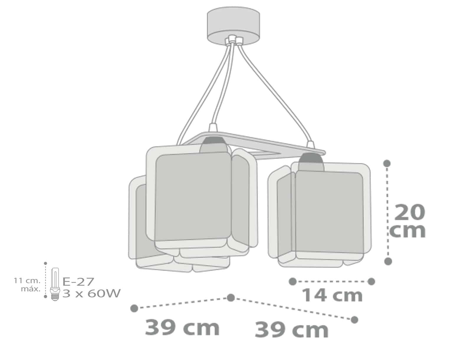 Μοντέρνα, τριγωνική κατασκευή με τρία φωτεινά σώματα σε κάθε γωνία και ανάλογες θέσεις λαμπτήρων. Κατασκευασμένο με διπλά τοιχώματα προσφέρει άπλετο φως, διασκεδαστικό χαρακτήρα και χρώμα σε κάθε σημείο του παιδικού δωματίου. Απόλυτα ασφαλές ώστε τα παιδιά να μπορούν να παίξουν και να κοιμηθούν παρέα με το αγαπημένο τους θέμα. Κατασκευάζεται εξ ολοκλήρου στην Ευρώπη και συμπληρώνει τα υπόλοιπα φωτιστικά της συλλογής.