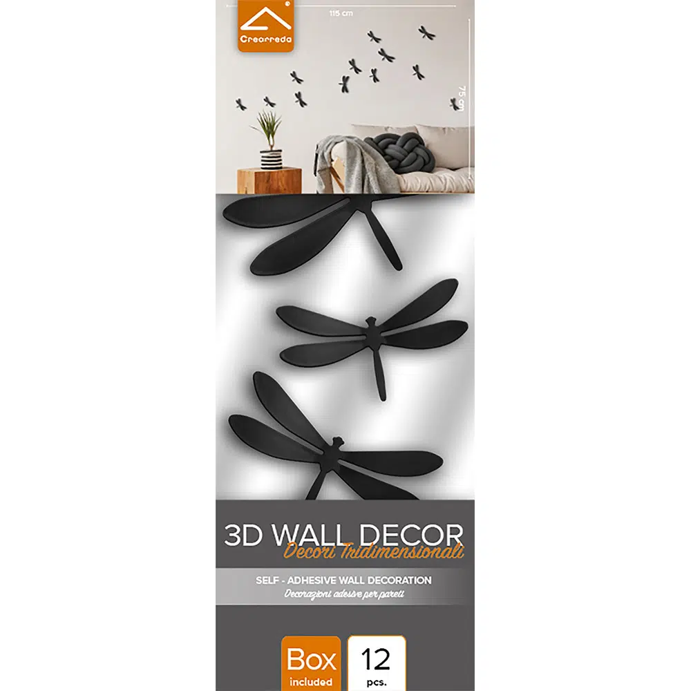 Ένας εύκολος τρόπος για να διακοσμήσετε οποιοδήποτε χώρο, προσθέτοντας μια παιχνιδιάρικη πινελιά σε κάθε δωμάτιο. Οι τρισδιάστατες σιλουέτες για τον τοίχο είναι εύκολο να τοποθετηθούν χρησιμοποιώντας την φαντασία σας. Όμορφες πινελιές που… μαγεύουν! Φέρτε τη φύση στο σπίτι με το σετ κουτιών “Spring Décor” με τρισδιάστατες πεταλούδες. Παίξτε με τα διαφορετικά μεγέθη της συσκευασίας για να δημιουργήσετε τη δική σας διάταξη. Κάθε έμφαση προσαρμόζεται εύκολα στον τοίχο με της διπλής επιφανείας επανανα-τοποθετούμενο αυτοκόλλητο της 3Μ για ατελείωτες διαμορφώσεις. Τα Black Dragonflies 3D πολυπροπυλενίου έρχονται σε χαριτωμένη συσκευασία, τέλεια ιδέα και για δώρο!