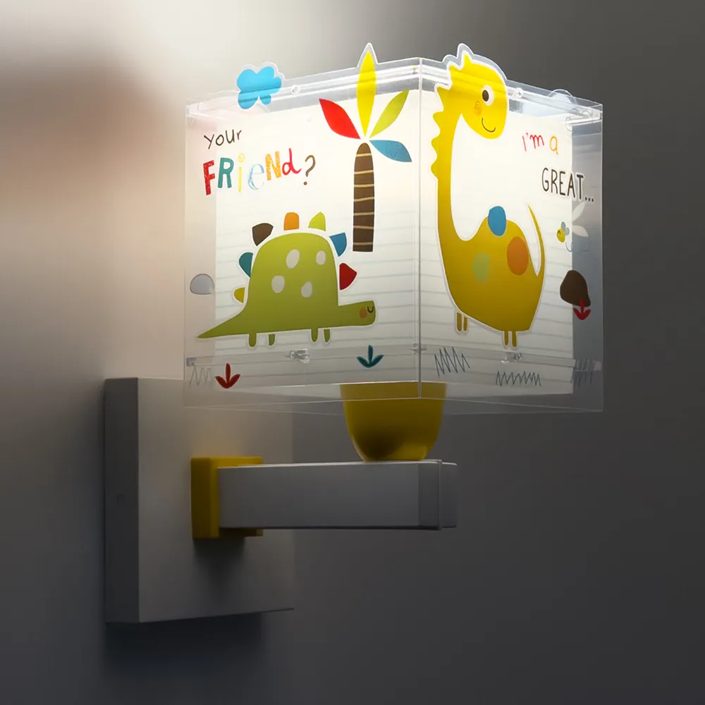 Η Dinos απλίκα τοίχου αποτελεί την ιδανική λύση για να προσφέρετε στο παιδικό δωμάτιο έναν φωτεινό και ευχάριστο χαρακτήρα. Χάρη στον σχεδιασμό της, είναι εξαιρετική για χρήση ως φωτιστικό ανάγνωσης πάνω από το κρεβάτι, παρέχοντας ομοιόμορφο και ξεκούραστο φως που συνοδεύει ιδανικά τις βραδινές δραστηριότητες των παιδιών. Οι διασκεδαστικές απεικονίσεις με δεινοσαυράκια προσθέτουν μια χαρούμενη νότα στη διακόσμηση, ενθαρρύνοντας τη δημιουργικότητα και το παιχνίδι. Η Dinos απλίκα τοίχου είναι κατασκευασμένη εξ ολοκλήρου στην Ευρώπη με υψηλές προδιαγραφές ασφαλείας και συμπληρώνει τέλεια την υπόλοιπη συλλογή Dinos, εξασφαλίζοντας μια ομοιόμορφη και μαγική ατμόσφαιρα σε όλο τον χώρο.