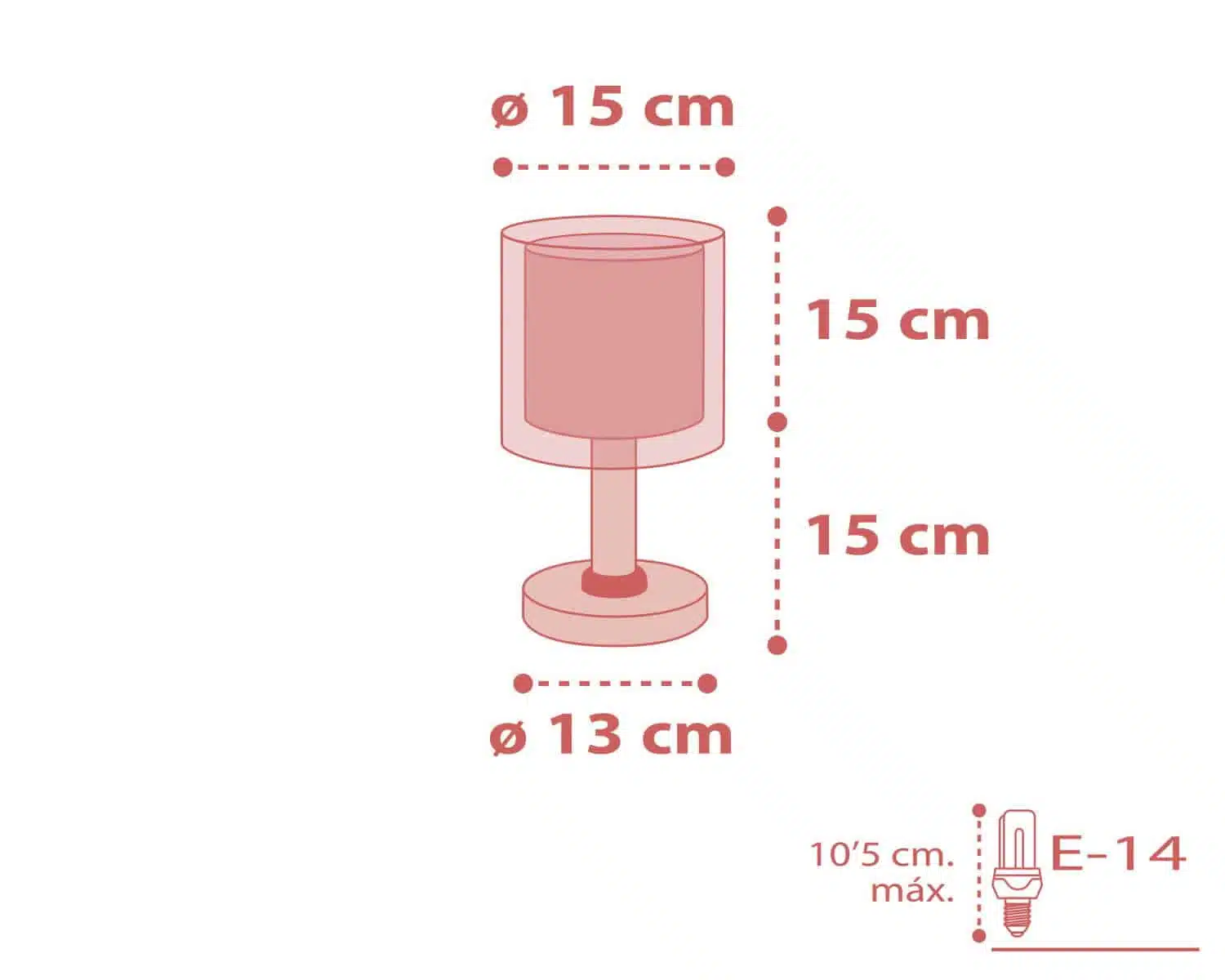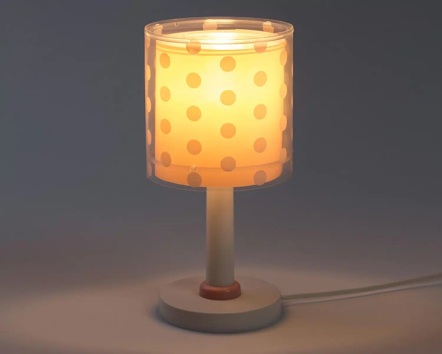 Κλασικής σχεδίασης παιδικό φωτιστικό κομοδίνου με διπλό τοίχωμα με διάφανο το εξωτερικό του. Συνθετικό υλικό αντοχής πολυπροπυλενίου. Ιδανικό για γραφείο ή κομοδίνο για διάβασμα ή συμπληρωματικό φωτισμό. Τύπος ντουί E14 με θέση για έναν λαμπτήρα LED και διακόπτη λειτουργίας επάνω στο καλώδιο. Το Dots Pink κομοδίνου φωτιστικό συμπληρώνει τα υπόλοιπα παιδικά φωτιστικά της συλλογής και είναι κατασκευασμένο εξ ολοκλήρου στην Ευρώπη.