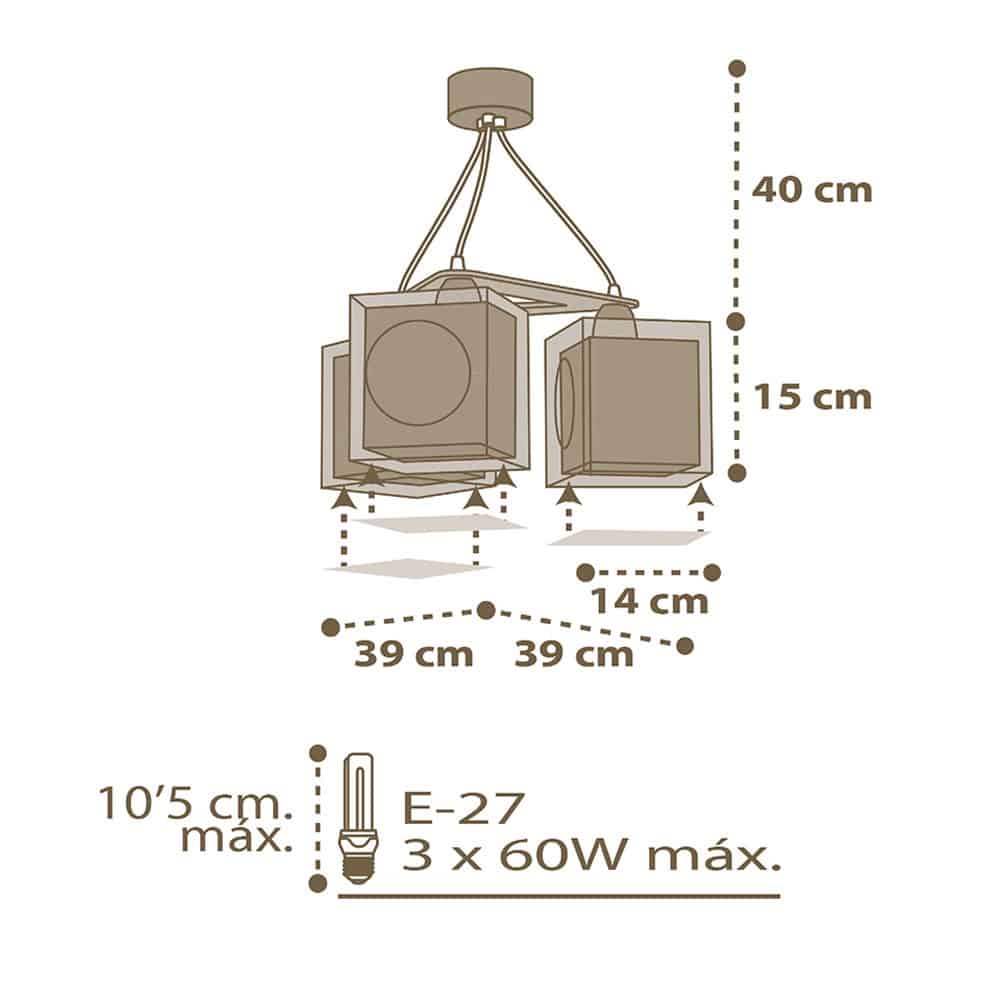 Μοντέρνα, τριγωνική κατασκευή με τρία φωτεινά σώματα σε κάθε γωνία και ανάλογες θέσεις λαμπτήρων. Κατασκευασμένο με διπλά τοιχώματα προσφέρει άπλετο φως, διασκεδαστικό χαρακτήρα και χρώμα σε κάθε σημείο του παιδικού δωματίου. Έχει φωσφορίζοντα στο σκοτάδι μέρη στο εξωτερικό του και είναι απόλυτα ασφαλές ώστε τα παιδιά να μπορούν να μελετήσουν, να παίξουν και να κοιμηθούν παρέα με το αγαπημένο τους θέμα. Κατασκευάζεται εξ ολοκλήρου στην Ευρώπη και συμπληρώνει τα υπόλοιπα φωτιστικά της συλλογής.