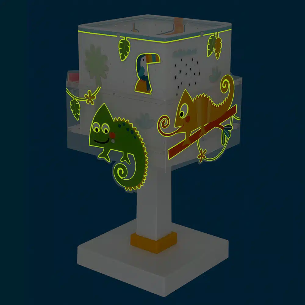 Κλασικής σχεδίασης Happy Jungle επιτραπέζιο παιδικό φωτιστικό με θέμα τα ζώα της ζούγκλας και διπλό τοίχωμα. Καλωσορίστε το παιδί σας σε ένα δωμάτιο πλημμυρισμένο από μαγεία προσθέτοντας διασκεδαστικό χαρακτήρα και χρώμα ακόμα και στο σκοτάδι με τα φωσφορίζοντα μέρη του. Το Happy Jungle επιτραπέζιο παιδικό φωτιστικό είναι κατάλληλο για συμπληρωματικό φωτισμό δημιουργώντας περιβάλλον που ενθαρρύνει τα παιδιά να επιδοθούν σε ότι τους αρέσει περισσότερο στη διασκέδαση και την δημιουργικότητα! Είναι ένα παιδικό φωτιστικό απόλυτα ασφαλές ώστε τα παιδιά να μπορούν να μελετήσουν, να παίξουν και να κοιμηθούν παρέα με τον αγαπημένο τους ήρωα. Ανθεκτικό στα χτυπήματα και τις πτώσεις. Το Happy Jungle επιτραπέζιο παιδικό φωτιστικό συμπληρώνει τα υπόλοιπα παιδικά φωτιστικά της συλλογής. Είναι συμβατό με επίκαιρες προδιαγραφές ασφαλείας και κατασκευασμένο εξολοκλήρου στην Ευρώπη.