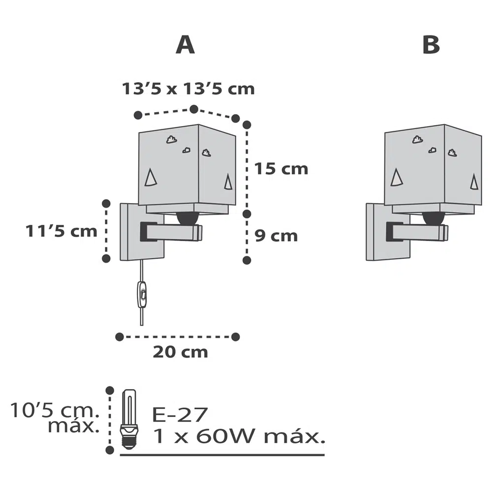 • Αριθμός λαμπτήρων: 1 (δε συμπεριλαμβάνεται)