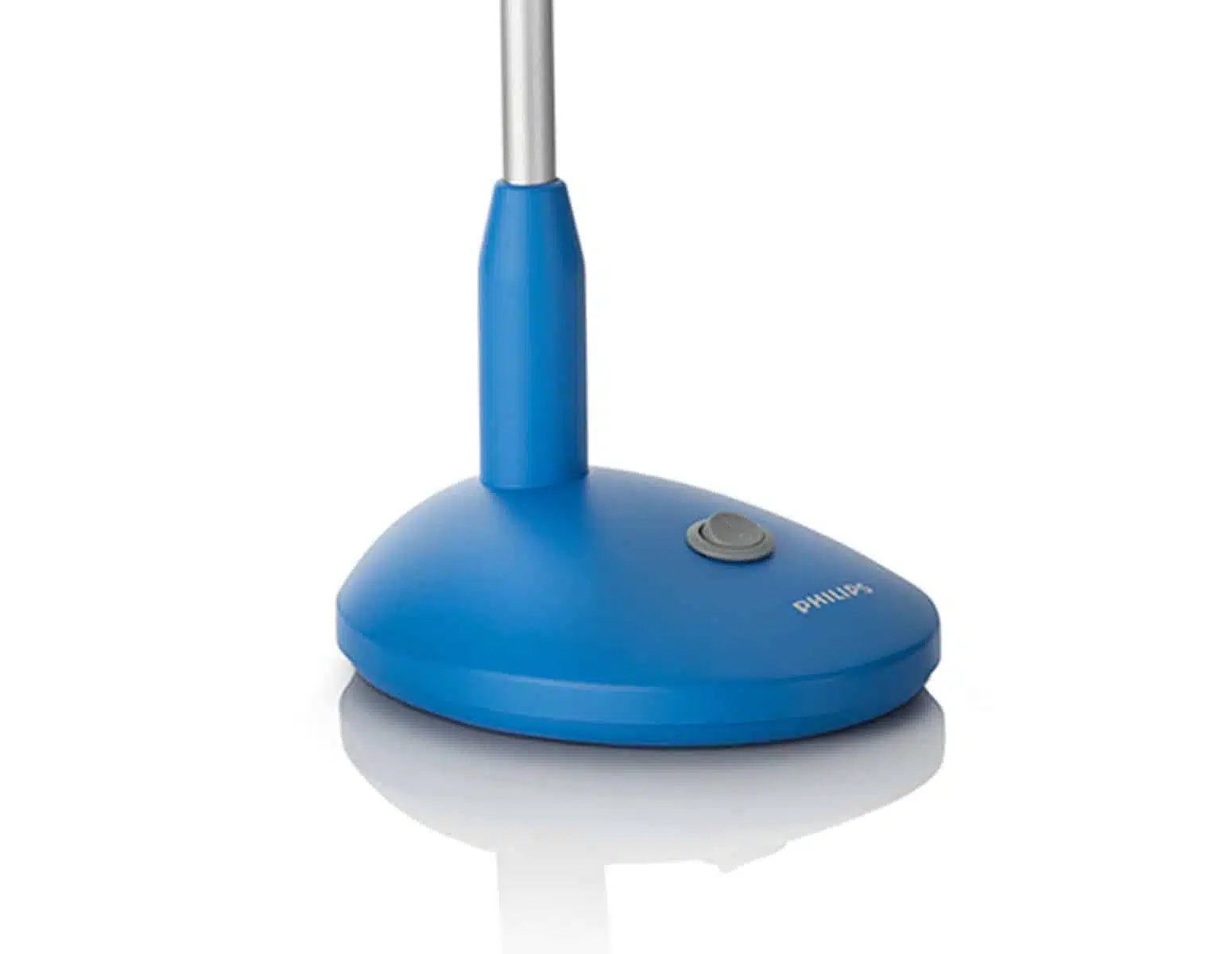 Επιτραπέζιο φωτιστικό σχεδιασμένο για το γραφείο ή το σπίτι. Παρέχει άπλετο, ζεστού φάσματος φως με τον συμπεριλαμβανόμενο λαμπτήρα οικονομίας της Philips 11W, και είναι ιδανικό για διάβασμα. Κατασκευασμένο με εύκαμπτο άξονα για εστίαση σε οποιοδήποτε σημείο. Ανθεκτικό στα χτυπήματα και τις πτώσεις. Απόλυτα συμβατό με τις ευρωπαϊκές προδιαγραφές ασφαλείας. Τύπος ντουί E27 με θέση για έναν λαμπτήρα. Τροφοδοσία ρεύματος 220V–240V. Διαστάσεις εκατοστά: Υ:35, Π:13,5. Το HomeOffice φωτιστικό γραφείου μπλε είναι ιδανικό φωτιστικό για πολύωρο διάβασμα χωρίς να κουράζει τα μάτια.