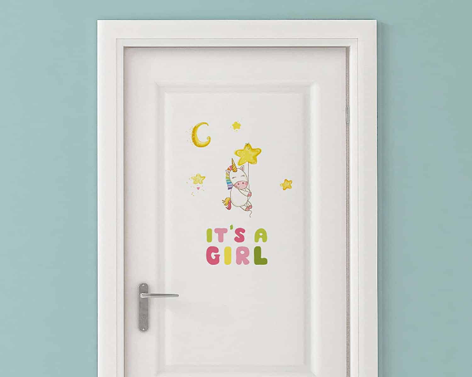 Καλωσορίστε το παιδί σας σε ένα δωμάτιο με απαλά ή ζωηρά ανάλογα με τις επιθυμίες σας. Προσαρμόζονται στους τοίχους και τις πόρτες διακοσμώντας σε ελάχιστο χρόνο αποτελεσματικά και οικονομικά, προσθέτοντας ένα διασκεδαστικό χαρακτήρα και χρώμα. Είναι αυτοκόλλητα και τοποθετούνται εύκολα και γρήγορα δίδοντας μια προσωπική “πινελιά” στο δωμάτιο του παιδιού. Τα It’s A Girl διακοσμητικά αυτοκόλλητα τοίχου επανατοποθετούνται χωρίς ζημιές.