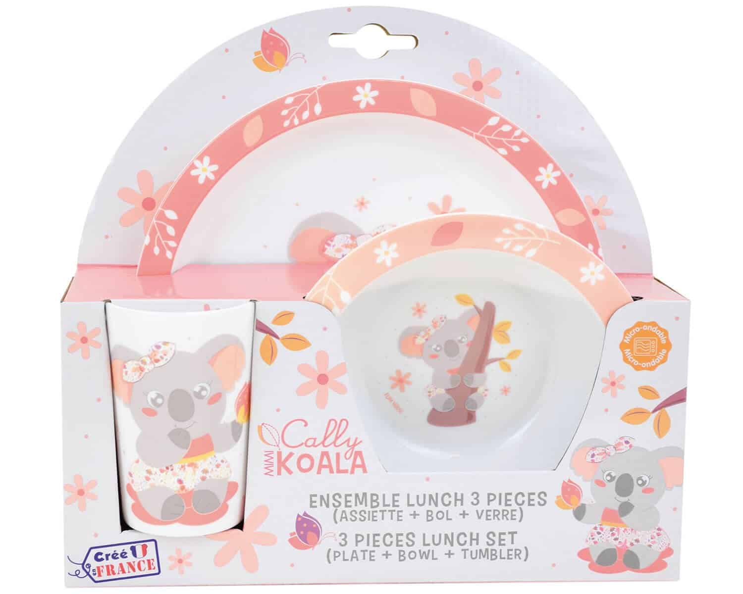 Πρόκειται για σερβίτσιο τριών τεμαχίων με θέμα το αρκουδάκι Koala το οποίο κάνει διασκεδαστικό κάθε γεύμα των παιδιών σας! Το Koala παιδικό σερβίτσιο φαγητού περιλαμβάνει πιάτο, μπολ και ποτήρι. Είναι κατασκευασμένο από πολυπροπυλένιο, κατάλληλο για παιδιά ηλικίας άνω των 6 μηνών.