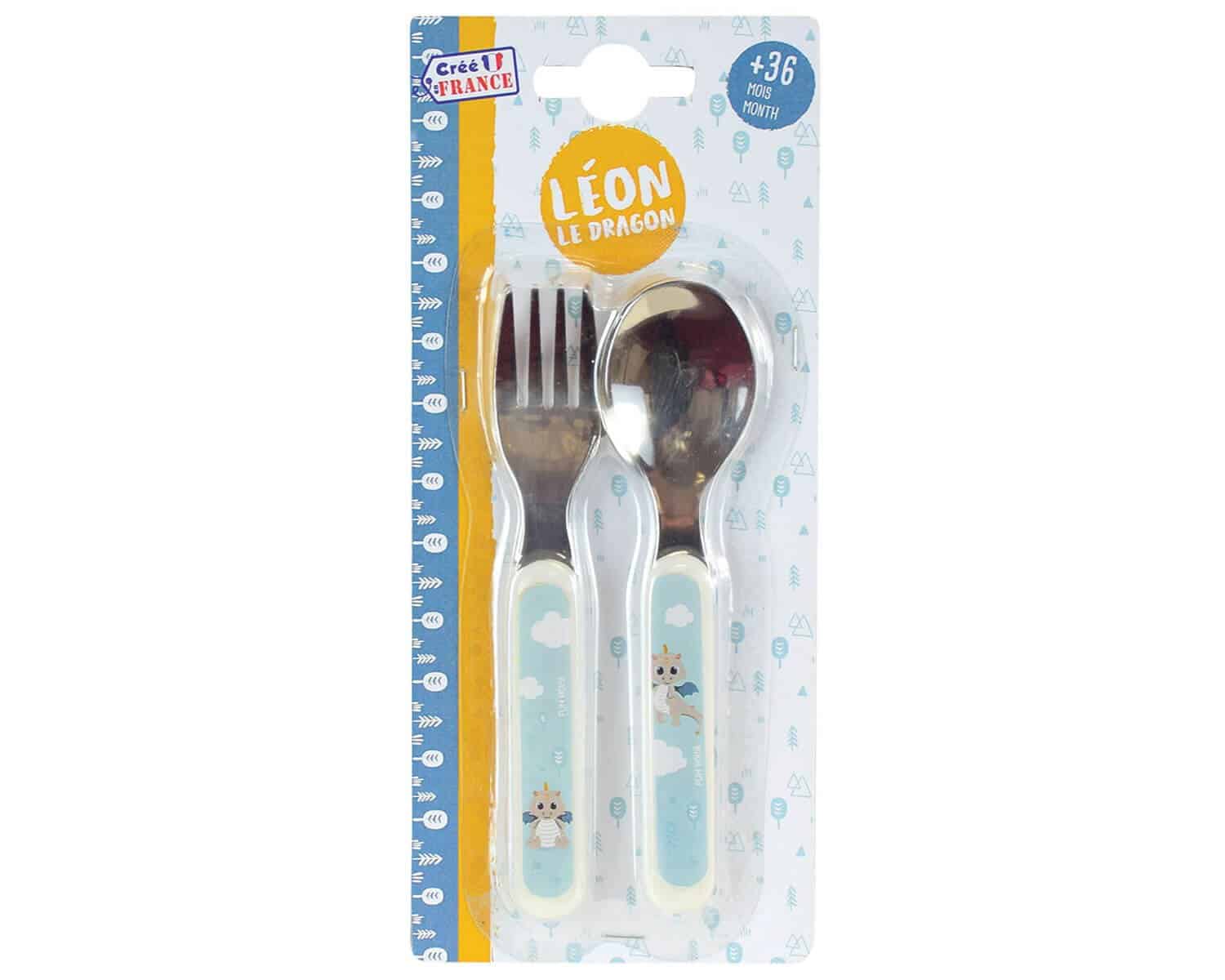 Πρόκειται για σετ κουτάλι και πιρούνι δύο τεμαχίων με θέμα τον Leon the Dragon το οποίο κάνει διασκεδαστικό κάθε γεύμα των παιδιών σας! Το Leon the Dragon σετ κουτάλι πιρούνι είναι κατασκευασμένο από πολυπροπυλένιο και inox και κατάλληλο για παιδιά ηλικίας άνω των 36 μηνών.