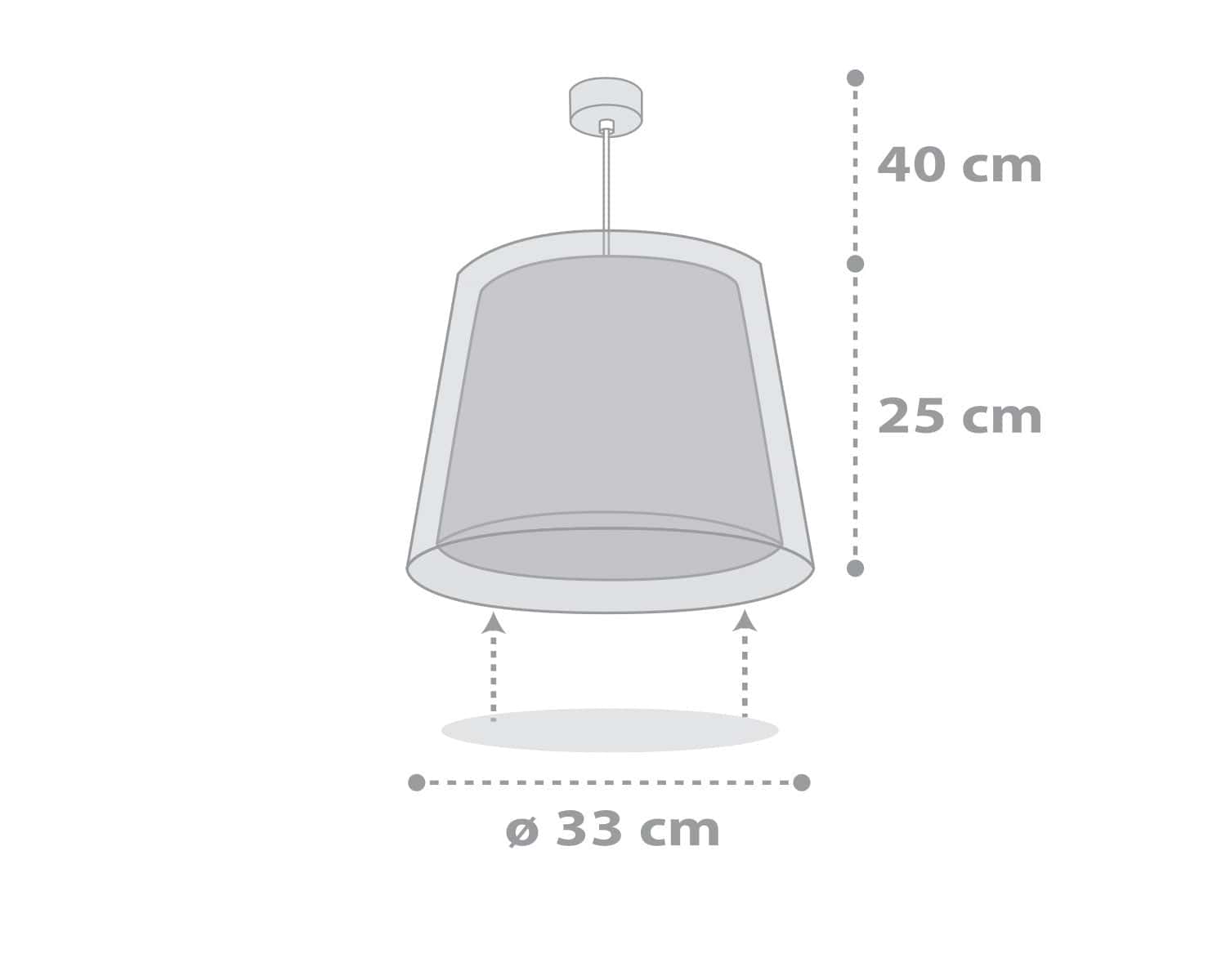 Μεγάλο σε μέγεθος φωτιστικό οροφής κατάλληλο για γενικό φωτισμό. Είναι διπλού τοιχώματος με διάφανο το εξωτερικό του τοίχωμα. Κατασκευασμένο από συνθετικό υλικό αντοχής πολυπροπυλενίου και ανεξίτηλες εκτυπώσεις. Παρέχεται διαχυτής φωτός για τις μικρότερες ηλικίες προσφέροντας ομοιόμορφο φωτισμό. Το κιτ ανάρτησης είναι πλήρες και περιέχει σετ γάντζου, καλώδιο ρυθμιζόμενο στο ύψος καθώς και ροζέτα κάλυψης σημείων σύνδεσης & στήριξης. Διαστάσεις σε εκατοστά: ∅33 x Υ:25. Το Light Feeling Gray κρεμαστό φωτιστικό οροφής τοποθετείται εύκολα και είναι κατασκευασμένο εξ ολοκλήρου στην Ευρώπη.