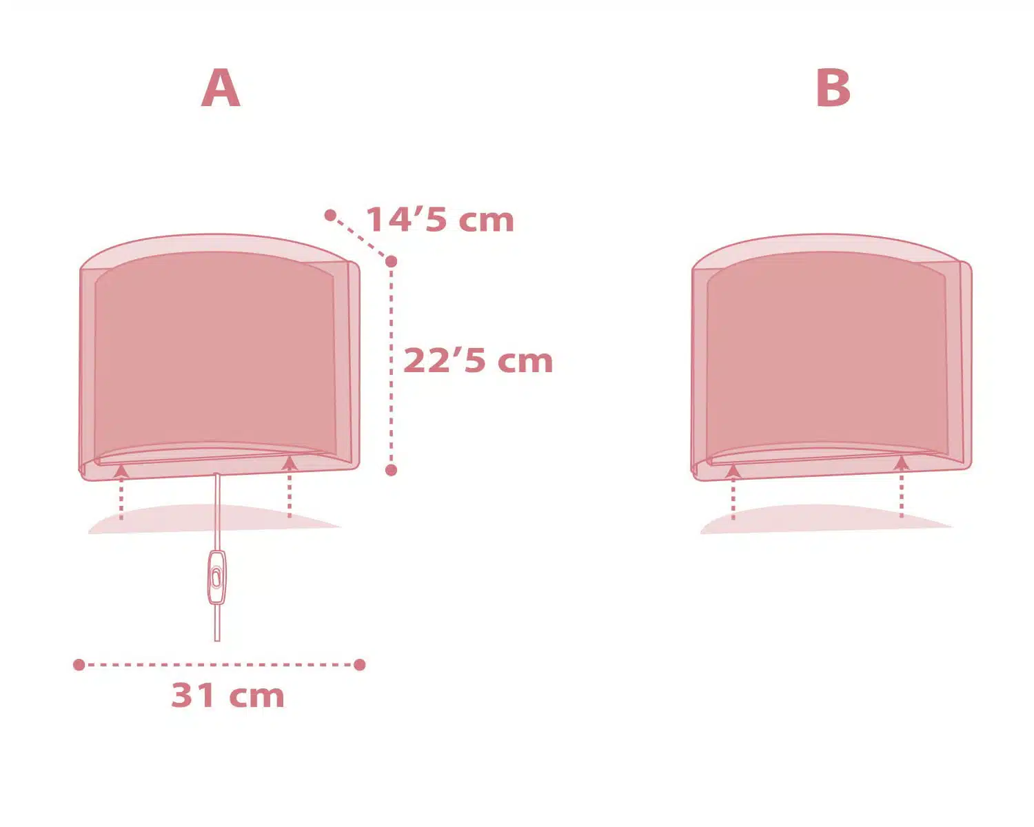 Μεγάλο σε μέγεθος φωτιστικό απλίκα τοίχου, ιδανικά σχεδιασμένο για γενικό ή συμπληρωματικό φωτισμό. Φωτίζει και προσθέτει διασκεδαστικό χαρακτήρα και χαρούμενο άγγιγμα σε κάθε δωμάτιο. Παρέχει ομοιόμορφο άπλετο φως δημιουργώντας περιβάλλον που ενθαρρύνει τα παιδιά να επιδοθούν σε ότι τους αρέσει περισσότερο στην διασκέδαση και την δημιουργικότητα! Το Light Feeling Pink φωτιστικό απλίκα συμπληρώνει τα υπόλοιπα φωτιστικά της συλλογής και είναι κατασκευασμένο εξ ολοκλήρου στην Ευρώπη.