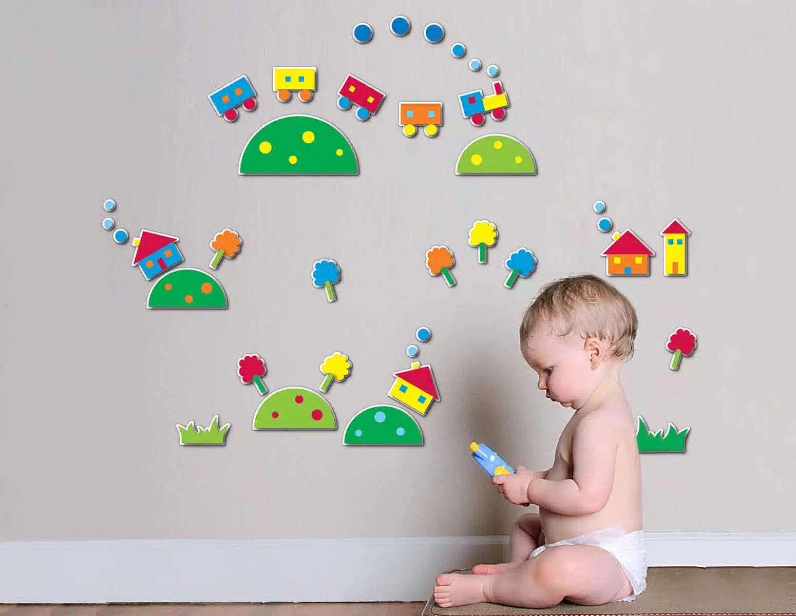 Καλωσορίστε το παιδί σας σε ένα δωμάτιο με απαλά χρώματα και σχέδια κατάλληλα για τα πρώτα του χρόνια. Προσαρμόστε τις διακοσμήσεις των τοίχων σας, τις πόρτες και τα έπιπλα με βάση την ηλικία του παιδιού σας. Διακοσμήστε με φαντασία σε ελάχιστο χρόνο αποτελεσματικά και οικονομικά δίδοντας μια προσωπική “πινελιά” στο δωμάτιο του παιδιού σας. Τα Little Train αφρώδες αυτοκόλλητο τοίχου είναι εξαιρετικά εύκολα στην τοποθέτησή τους με δυνατότητα επανατοποθετήσεως χωρίς ζημιές στο τοίχο ή το αυτοκόλλητο.