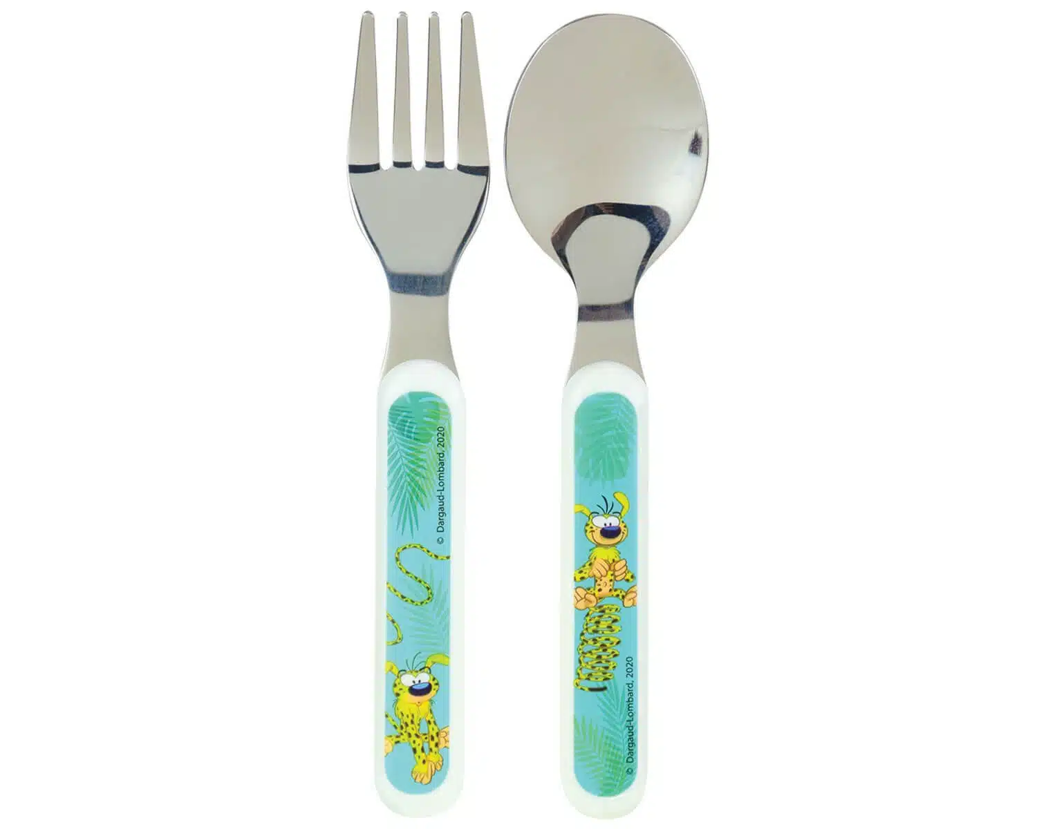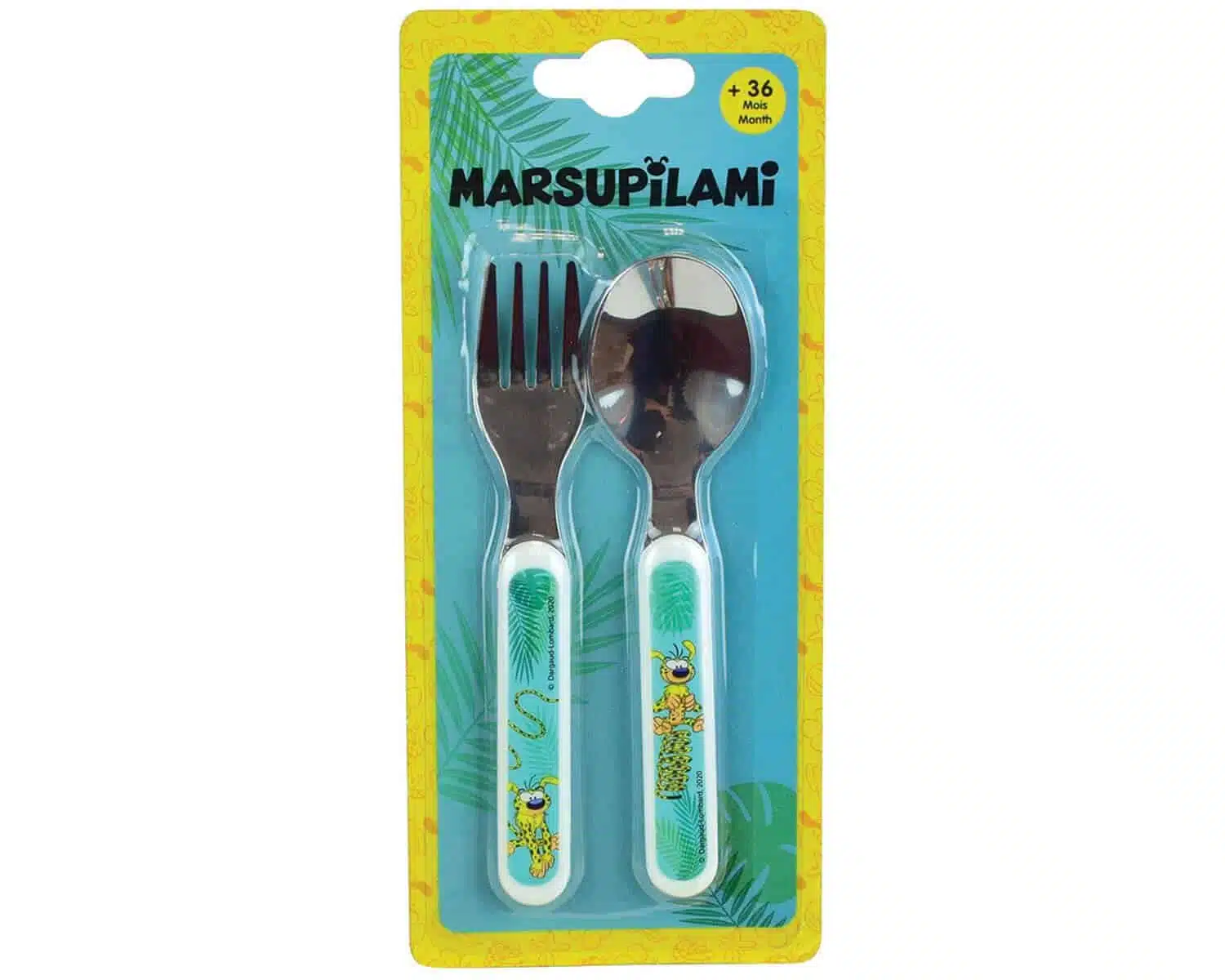 Πρόκειται για σετ κουτάλι και πιρούνι δύο τεμαχίων με θέμα τα Marsupilami το οποίο κάνει διασκεδαστικό κάθε γεύμα των παιδιών σας ! Είναι κατασκευασμένο από πολυπροπυλένιο και inox και κατάλληλο για παιδιά ηλικίας άνω των 36 μηνών.