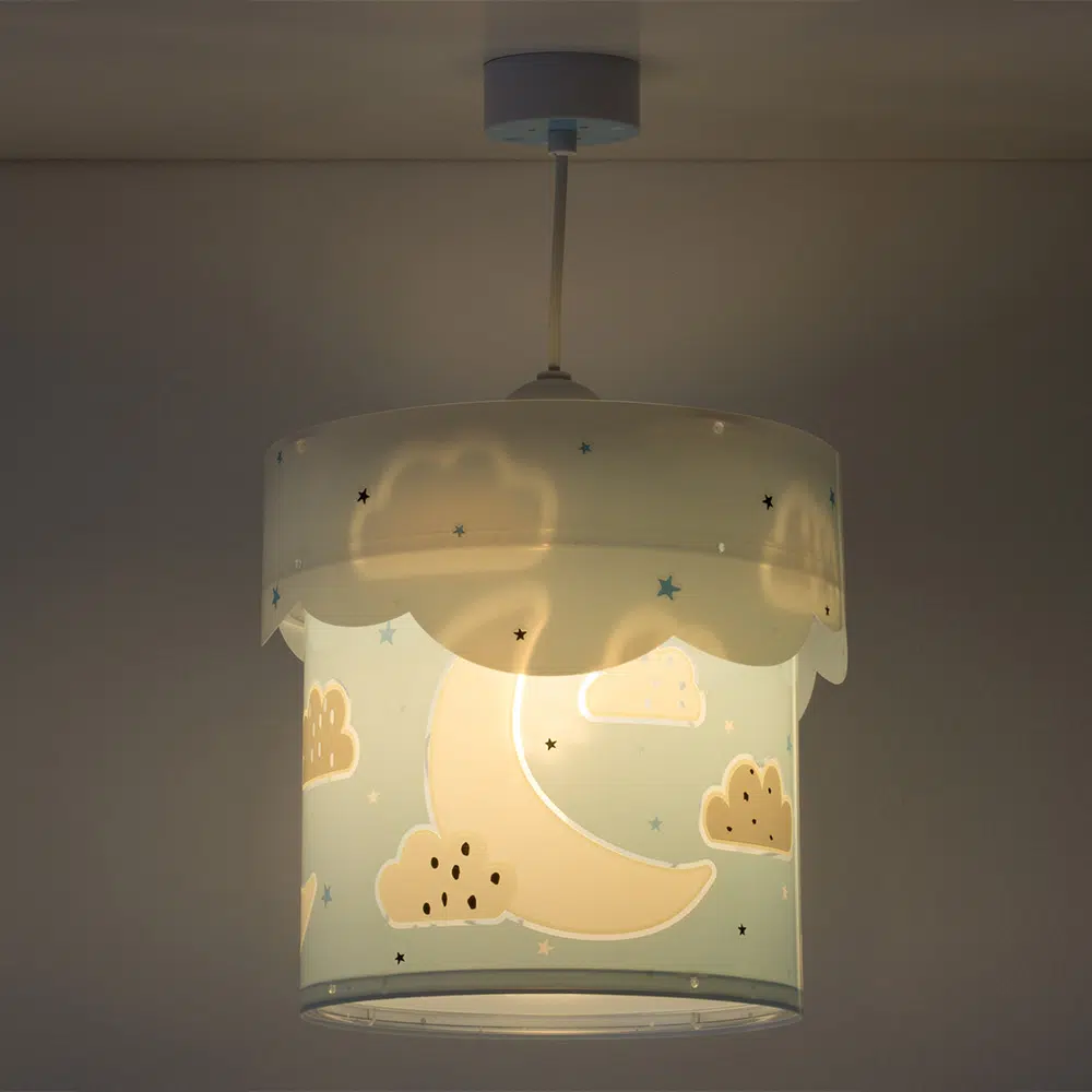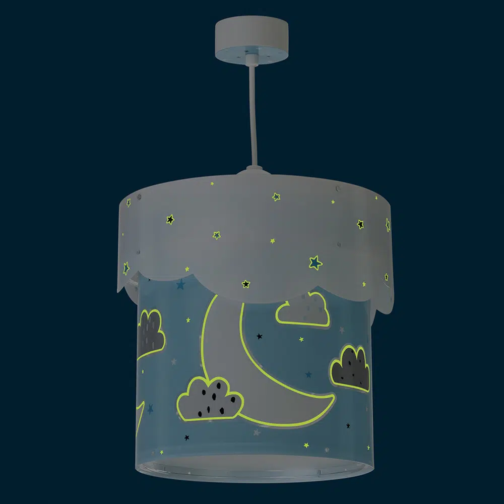 Καλωσορίστε το παιδί σας σε ένα δωμάτιο πλημμυρισμένο από μαγεία με αυτό το παιδικό φωτιστικό οροφής κατάλληλο για γενικό φωτισμό. Είναι διπλού τοιχώματος με διάφανο το εξωτερικό του τοίχωμα και μαγικά φωσφορίζοντα μέρη στο σκοτάδι. Το Moon Blue παιδικό φωτιστικό οροφής είναι κατασκευασμένο από συνθετικό υλικό αντοχής πολυπροπυλενίου και ανεξίτηλες εκτυπώσεις. Παρέχεται διαχυτής φωτός για τις μικρότερες ηλικίες προσφέροντας ομοιόμορφο φωτισμό. Το κιτ ανάρτησης είναι πλήρες και περιέχει σετ γάντζου, καλώδιο ρυθμιζόμενο στο ύψος καθώς και ροζέτα κάλυψης σημείων σύνδεσης & στήριξης. Το Moon Blue παιδικό φωτιστικό οροφής τοποθετείται εύκολα και είναι κατασκευασμένο εξ ολοκλήρου στην Ευρώπη.
