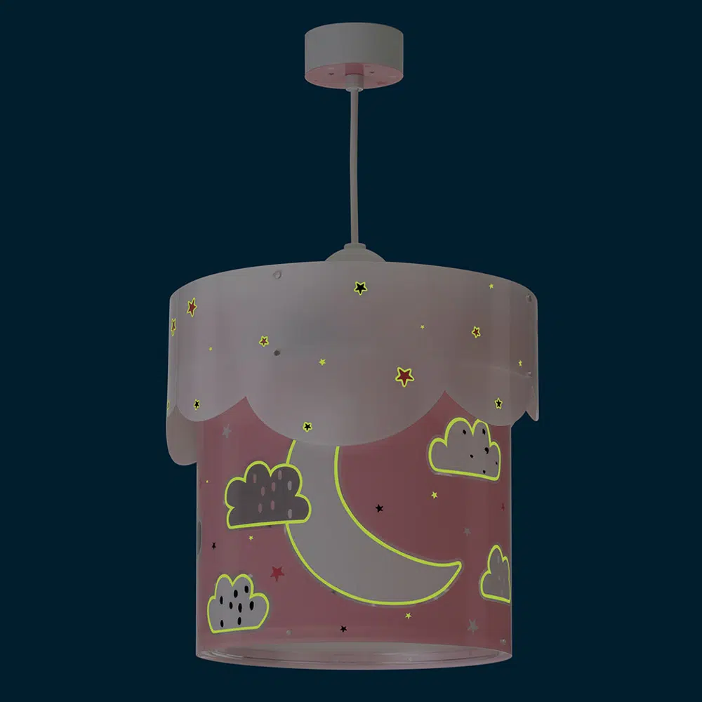 Καλωσορίστε το παιδί σας σε ένα δωμάτιο πλημμυρισμένο από μαγεία με αυτό το παιδικό φωτιστικό οροφής κατάλληλο για γενικό φωτισμό. Το Moon Pink παιδικό φωτιστικό οροφής είναι διπλού τοιχώματος με διάφανο το εξωτερικό του τοίχωμα και μαγικά φωσφορίζοντα μέρη στο σκοτάδι. Κατασκευασμένο από συνθετικό υλικό αντοχής πολυπροπυλενίου και ανεξίτηλες εκτυπώσεις. Παρέχεται διαχυτής φωτός για τις μικρότερες ηλικίες προσφέροντας ομοιόμορφο φωτισμό. Το κιτ ανάρτησης είναι πλήρες και περιέχει σετ γάντζου, καλώδιο ρυθμιζόμενο στο ύψος καθώς και ροζέτα κάλυψης σημείων σύνδεσης & στήριξης. Το Moon Pink παιδικό φωτιστικό οροφής τοποθετείται εύκολα και είναι κατασκευασμένο εξ ολοκλήρου στην Ευρώπη.