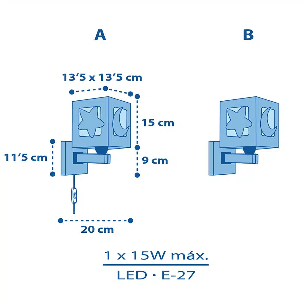 Η απλίκα Moonlight Blue προσφέρει τον ιδανικό συνδυασμό λειτουργικότητας και φαντασίας. Είναι σχεδιασμένη για να φωτίζει γλυκά το παιδικό δωμάτιο, δημιουργώντας ένα περιβάλλον ασφάλειας και έμπνευσης.
