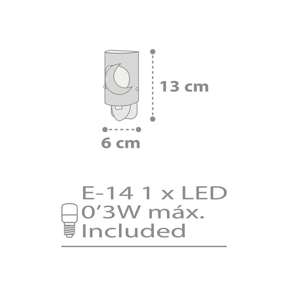 Παιδικό φωτιστικό νυκτός τεχνολογίας LED εκπέμπει απαλό καθησυχαστικό φως για να βοηθήσει τους μικρούς μας φίλους να κοιμηθούν όλη τη νύχτα. Το MoonLight Gray φωτιστικό νύκτας πρίζας LED είναι κατασκευασμένο εξ ολοκλήρου στην Ευρώπη από πολυπροπυλένιο, συνθετικά & πλαστικά μέρη. Δυνατότητα κάθετης ή οριζόντιας τοποθέτησης. Το παιδικό φως πρίζας διπλού τοιχώματος και απολύτου ασφαλείας με κεκλεισμένα μέρη. Το MoonLight Gray φωτιστικό νύκτας πρίζας LED είναι κρύο στην επαφή διατίθεται με ενσωματωμένο διακόπτη ώστε να μην χρειάζεται να βγει από την πρίζα όταν δεν ανάβει. Τύπος λαμπτήρα Ε-14 LED (συμπεριλαμβάνεται) με ισχύ: 0,5W – αντικαταστάσιμος και διάρκεια ζωής 30.000 ώρες.