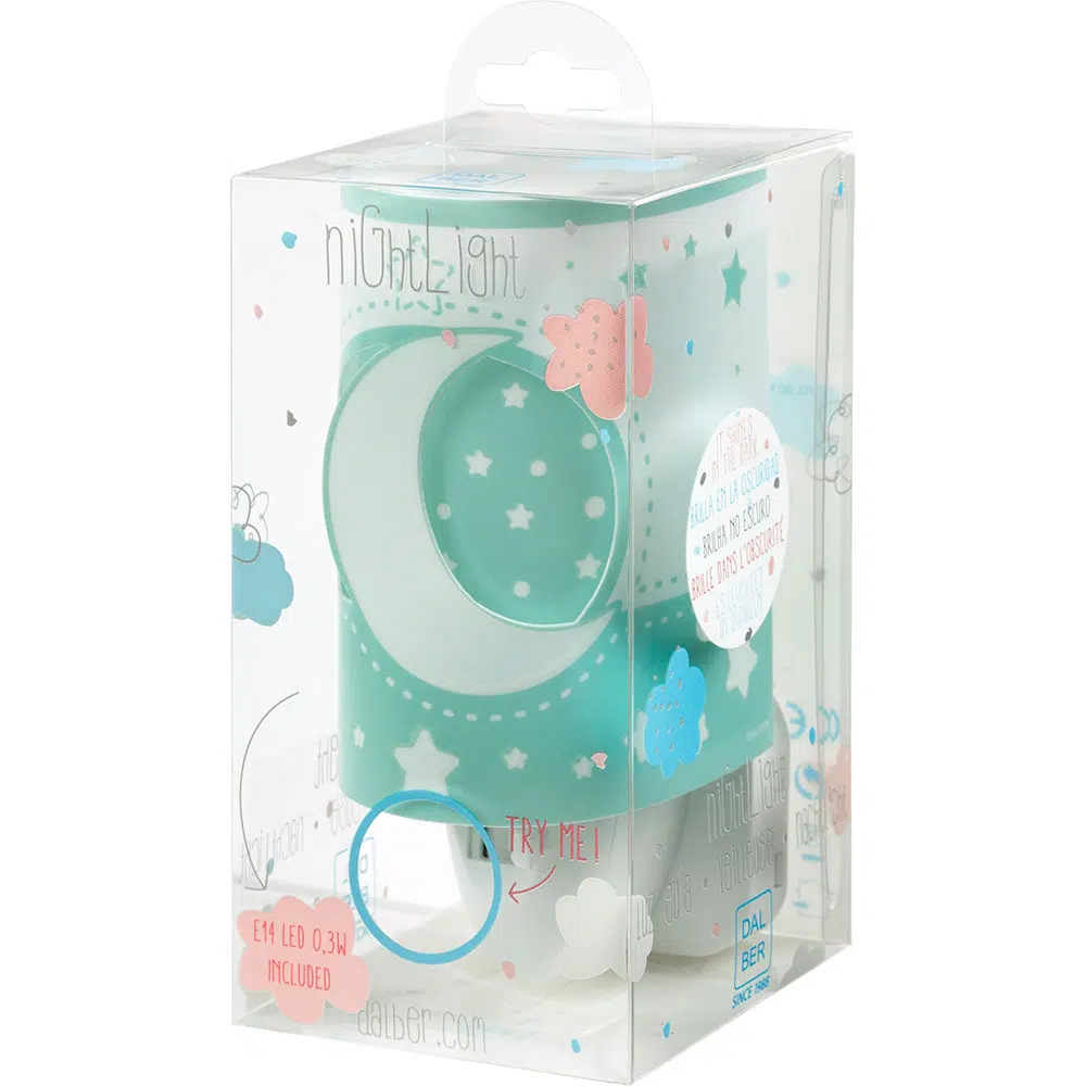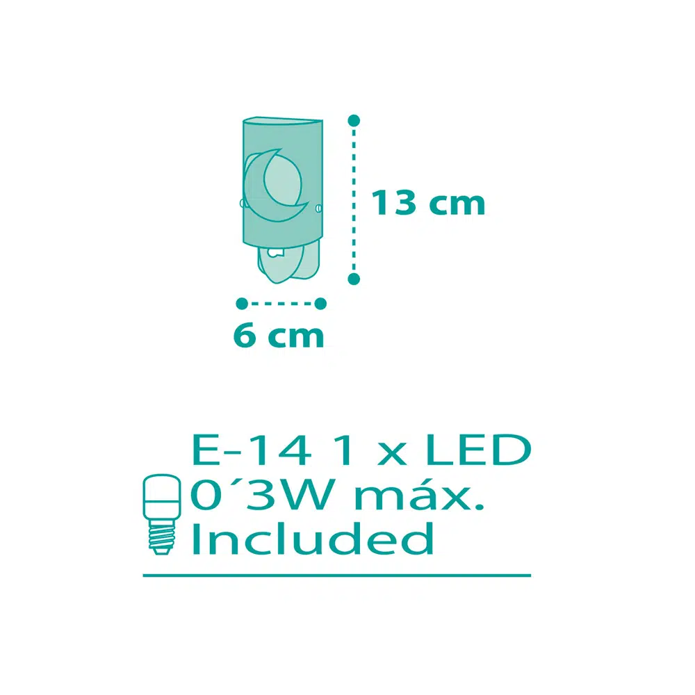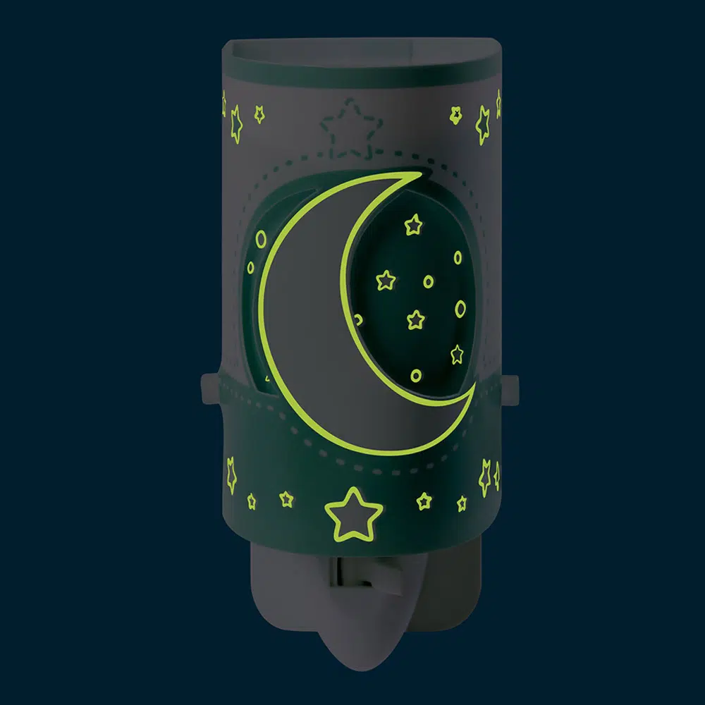 Παιδικό φωτιστικό νυκτός τεχνολογίας LED εκπέμπει απαλό καθησυχαστικό φως για να βοηθήσει τους μικρούς μας φίλους να κοιμηθούν όλη τη νύχτα. Κατασκευασμένο εξ ολοκλήρου στην Ευρώπη από πολυπροπυλένιο, συνθετικά & πλαστικά μέρη. Δυνατότητα κάθετης ή οριζόντιας τοποθέτησης. Διπλού τοιχώματος και απολύτου ασφαλείας με κεκλεισμένα μέρη. Το MoonLight Green φως νύκτας πρίζας LED είναι κρύο στην επαφή διατίθεται με ενσωματωμένο διακόπτη ώστε να μην χρειάζεται να βγει από την πρίζα όταν δεν ανάβει. Τύπος λαμπτήρα Ε-14 LED (συμπεριλαμβάνεται) με ισχύ: 0,5W – αντικαταστάσιμος και διάρκεια ζωής 30.000 ώρες.