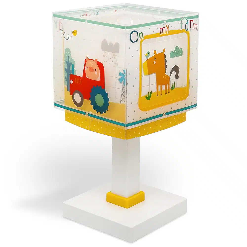 Δώστε ζωντάνια στο παιδικό δωμάτιο με το επιτραπέζιο φωτιστικό My Farm. Με κλασική σχεδίαση και θέμα τα αγαπημένα ζώα της φάρμας, το φωτιστικό αυτό δημιουργεί μια ζεστή και δημιουργική ατμόσφαιρα, ιδανική για παιχνίδι, μελέτη ή χαλάρωση πριν τον ύπνο.