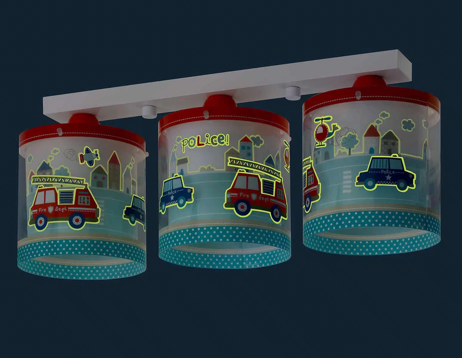 Καλωσορίστε το παιδί σας σε ένα δωμάτιο πλημμυρισμένο από μαγεία με αυτό το μοναδικό στο είδος του τρίφωτο παιδικό φωτιστικό οροφής κατάλληλο για γενικό φωτισμό. Προσθέτει διασκεδαστικό χαρακτήρα και χρώμα σε κάθε παιδικό δωμάτιο. Παρέχει ομοιόμορφο και άπλετο φωτισμό δημιουργώντας περιβάλλον που ενθαρρύνει τα παιδιά να επιδοθούν σε ότι τους αρέσει περισσότερο – διασκέδαση και δημιουργικότητα! Απόλυτα ασφαλές ώστε τα παιδιά να μπορούν να μελετήσουν, να παίξουν και να κοιμηθούν παρέα με τον αγαπημένο τους ήρωα. Κατασκευή με τρία φωτεινά σώματα και τρεις θέσεις λαμπτήρων οικονομίας. Το Police τρίφωτο οροφής συμπληρώνει τα υπόλοιπα παιδικά φωτιστικά της συλλογής.