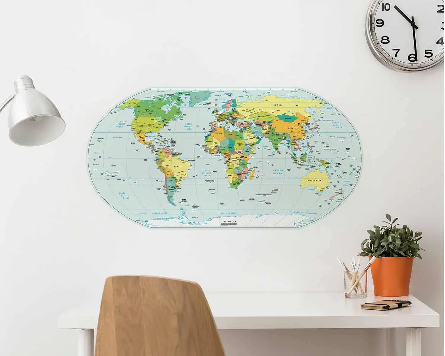 Διακοσμητικά τοίχου μεγάλα σε μέγεθος, που τοποθετούνται και προσαρμόζονται εύκολα και γρήγορα διακοσμώντας σε ελάχιστο χρόνο αποτελεσματικά και οικονομικά. Προσθέτουν ένα διασκεδαστικό χαρακτήρα και χρώμα. Είναι αυτοκόλλητα και τοποθετούνται εύκολα δίδοντας μια προσωπική “πινελιά” στο δωμάτιο. Τα Political Map αυτοκόλλητα τοίχου βινυλίου επανατοποθετούνται χωρίς ζημιές και έρχονται σε καρτέλα, κομμένα και έτοιμα για χρήση.