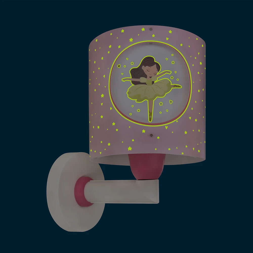 Η Princess Dance απλίκα τοίχου γεμίζει το παιδικό δωμάτιο με γοητεία και ζεστασιά. Οι χαριτωμένες μπαλαρίνες που χορεύουν δημιουργούν μια χαρούμενη και ήρεμη ατμόσφαιρα. Εμπνέουν παιχνίδι, φαντασία και στιγμές χαλάρωσης. Προσφέρει γενικό ή συμπληρωματικό φωτισμό και είναι ιδανική και ως φωτιστικό ανάγνωσης πάνω από το κρεβάτι, παρέχοντας ομοιόμορφο φως που ενθαρρύνει τα παιδιά να αφοσιωθούν στις αγαπημένες τους δραστηριότητες. Φωτίστε και διακοσμήστε προσθέτοντας ζεστασιά και μαγεία στο δωμάτιο. Μαγική ακόμα και όταν σβήσουν τα φώτα με τις μπαλαρίνες να λάμπουν, να μοιάζουν ότι αιωρούνται στο σκοτάδι. Είναι φτιαγμένο από ανθεκτικό συνθετικό υλικό λεπτού πολυπροπυλενίου με ανεξίτηλες εκτυπώσεις. Η Princess Dance απλίκα τοίχου τοποθετείται εύκολα στον τοίχο με δύο τρόπους και κατασκευάζεται στην Ευρώπη, με υψηλές προδιαγραφές ποιότητας και ασφάλειας..
