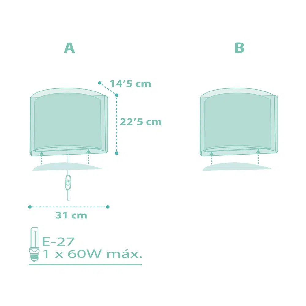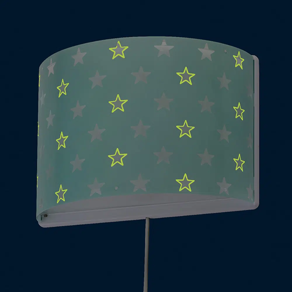 Μεγάλο σε μέγεθος παιδικό φωτιστικό απλίκα τοίχου, κατάλληλο για παιδιά και ιδανικά σχεδιασμένο για γενικό ή συμπληρωματικό φωτισμό. Φωτίζει και προσθέτει διασκεδαστικό χαρακτήρα και χαρούμενο άγγιγμα σε κάθε παιδικό δωμάτιο. Παρέχει ομοιόμορφο άπλετο φως δημιουργώντας περιβάλλον που ενθαρρύνει τα παιδιά να επιδοθούν σε ότι τους αρέσει περισσότερο στην διασκέδαση και την δημιουργικότητα! Το Stars Green φωτιστικό απλίκα έχει φωσφορίζοντα μέρη στο σκοτάδι στο εξωτερικό του τοίχωμα και συμπληρώνει τα υπόλοιπα παιδικά φωτιστικά της συλλογής. Είναι κατασκευασμένο εξ ολοκλήρου στην Ευρώπη.