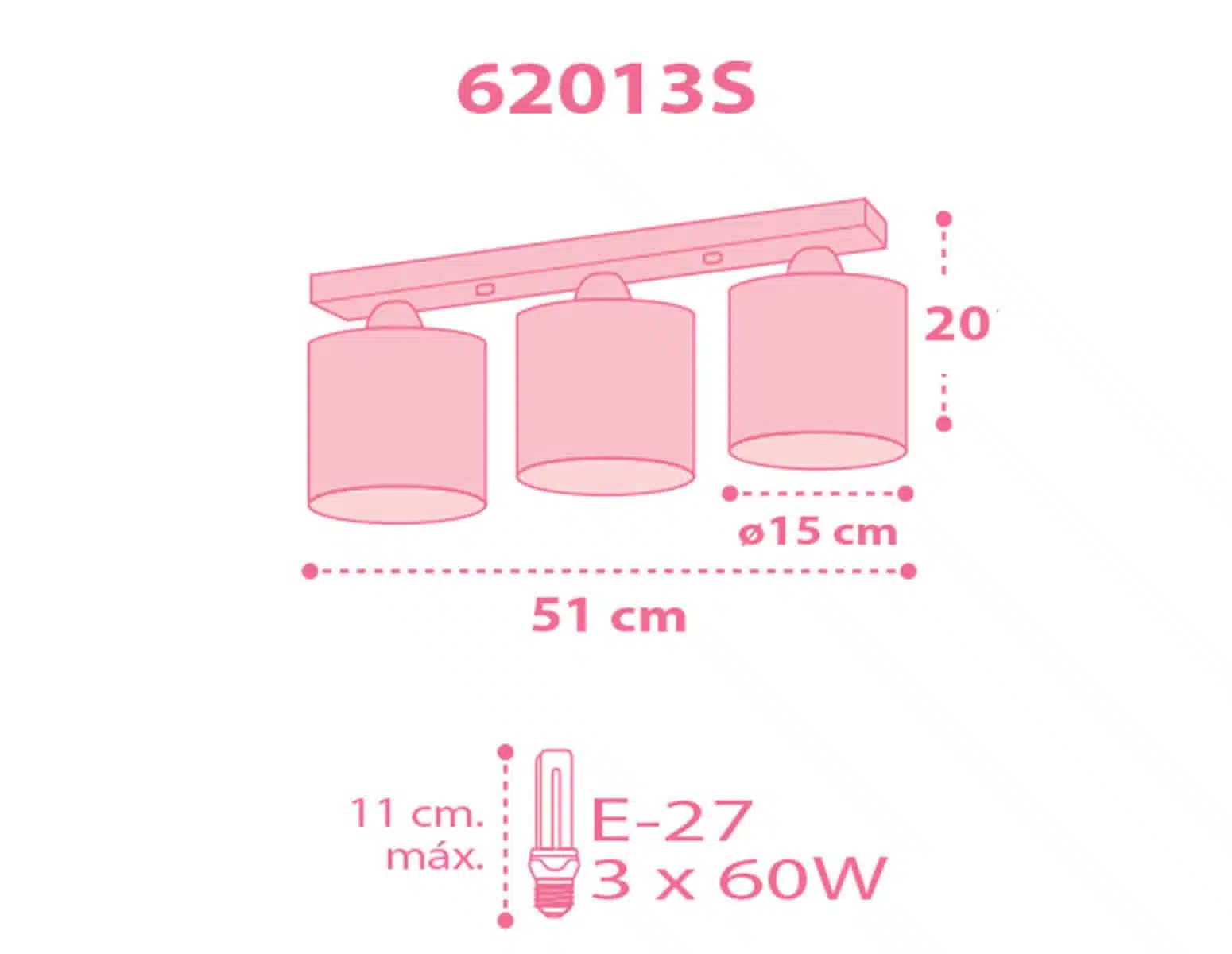 Παιδικό φωτιστικό οροφής κατάλληλο για γενικό φωτισμό. Κατασκευή με τρία φωτεινά σώματα, που παρέχει άπλετο φως. Προσφέρεται με τρεις θέσεις λαμπτήρων οικονομίας. Φωτίζει και προσθέτει διασκεδαστικό χαρακτήρα και χρώμα σε κάθε παιδικό δωμάτιο. Τα παιδιά να μπορούν να μελετήσουν, να παίξουν και να κοιμηθούν σε ένα ασφαλές και ευχάριστο περιβάλλον. Το Sweet Dreams Pink τρίφωτο οροφής συμπληρώνει τα υπόλοιπα φωτιστικά της συλλογής.