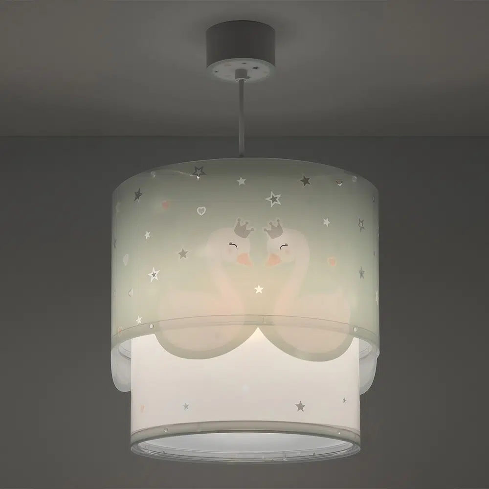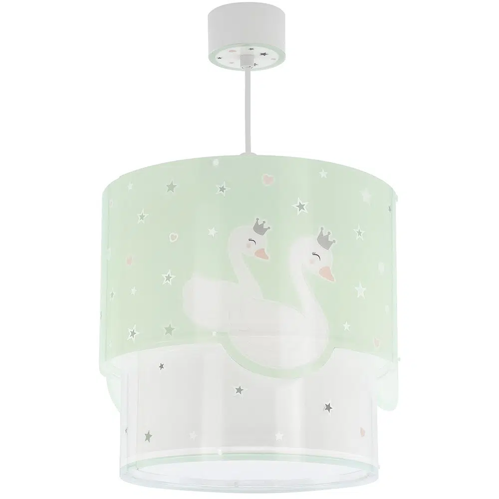Καλωσορίστε το παιδί σας σε ένα δωμάτιο πλημμυρισμένο από μαγεία με αυτό το παιδικό φωτιστικό οροφής με θέμα τους κύκνους κατάλληλο για γενικό φωτισμό. Είναι διπλού τοιχώματος με διάφανο το εξωτερικό του τοίχωμα. Το Sweet Love Green παιδικό φωτιστικό οροφής είναι κατασκευασμένο από συνθετικό υλικό αντοχής πολυπροπυλενίου και ανεξίτηλες εκτυπώσεις. Παρέχεται διαχυτής φωτός για τις μικρότερες ηλικίες προσφέροντας ομοιόμορφο φωτισμό. Το κιτ ανάρτησης είναι πλήρες και περιέχει σετ γάντζου, καλώδιο ρυθμιζόμενο στο ύψος καθώς και ροζέτα κάλυψης σημείων σύνδεσης & στήριξης. Το Sweet Love Green κρεμαστό παιδικό φωτιστικό οροφής τοποθετείται εύκολα και είναι κατασκευασμένο εξ ολοκλήρου στην Ευρώπη.