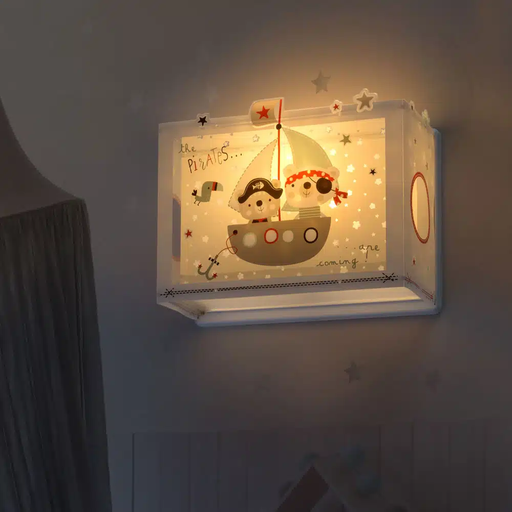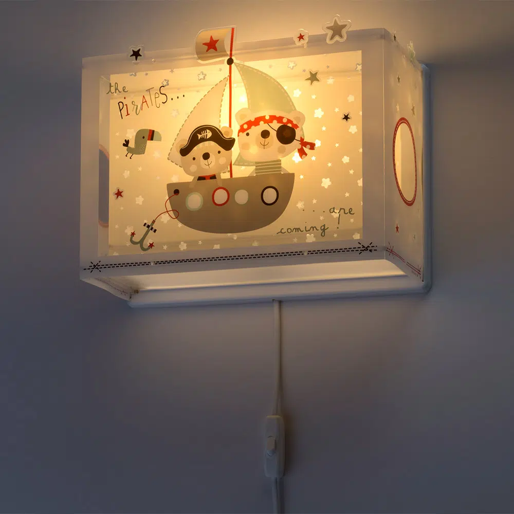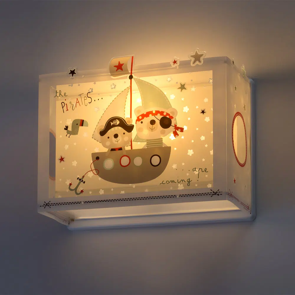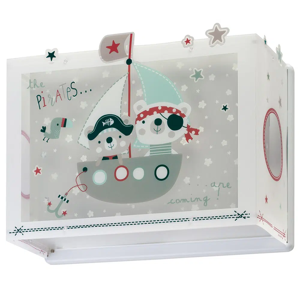 Μεγάλο σε μέγεθος παιδικό φωτιστικό απλίκα τοίχου, κατάλληλο για παιδιά και ιδανικά σχεδιασμένο για γενικό ή συμπληρωματικό φωτισμό. Φωτίζει και προσθέτει διασκεδαστικό χαρακτήρα και χαρούμενο άγγιγμα σε κάθε παιδικό δωμάτιο. Παρέχει ομοιόμορφο άπλετο φως δημιουργώντας περιβάλλον που ενθαρρύνει τα παιδιά να επιδοθούν σε ότι τους αρέσει περισσότερο στην διασκέδαση και την δημιουργικότητα! Το The Pirates φωτιστικό απλίκα συμπληρώνει τα υπόλοιπα παιδικά φωτιστικά της συλλογής και είναι κατασκευασμένο εξ ολοκλήρου στην Ευρώπη.
