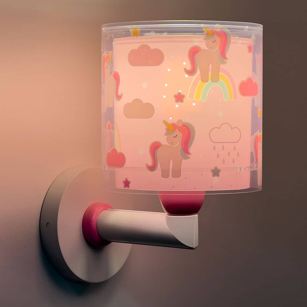 Παιδικό φωτιστικό απλίκα τοίχου με θέμα τους μονόκερους, ιδανικά σχεδιασμένο για γενικό ή συμπληρωματικό φωτισμό. Τοποθετείται στον τοίχο και είναι κατάλληλο ακόμα και για διάβασμα πάνω από το προσκέφαλο του κρεβατιού. Παρέχει ομοιόμορφο φως δημιουργώντας περιβάλλον που ενθαρρύνει τα παιδιά να επιδοθούν σε ότι τους αρέσει περισσότερο, διασκεδάζοντας ή δημιουργώντας! Το Unicorns φωτιστικό απλίκα διπλού τοιχώματος συμπληρώνει τα υπόλοιπα παιδικά φωτιστικά της συλλογής και είναι κατασκευασμένο εξ ολοκλήρου στην Ευρώπη.