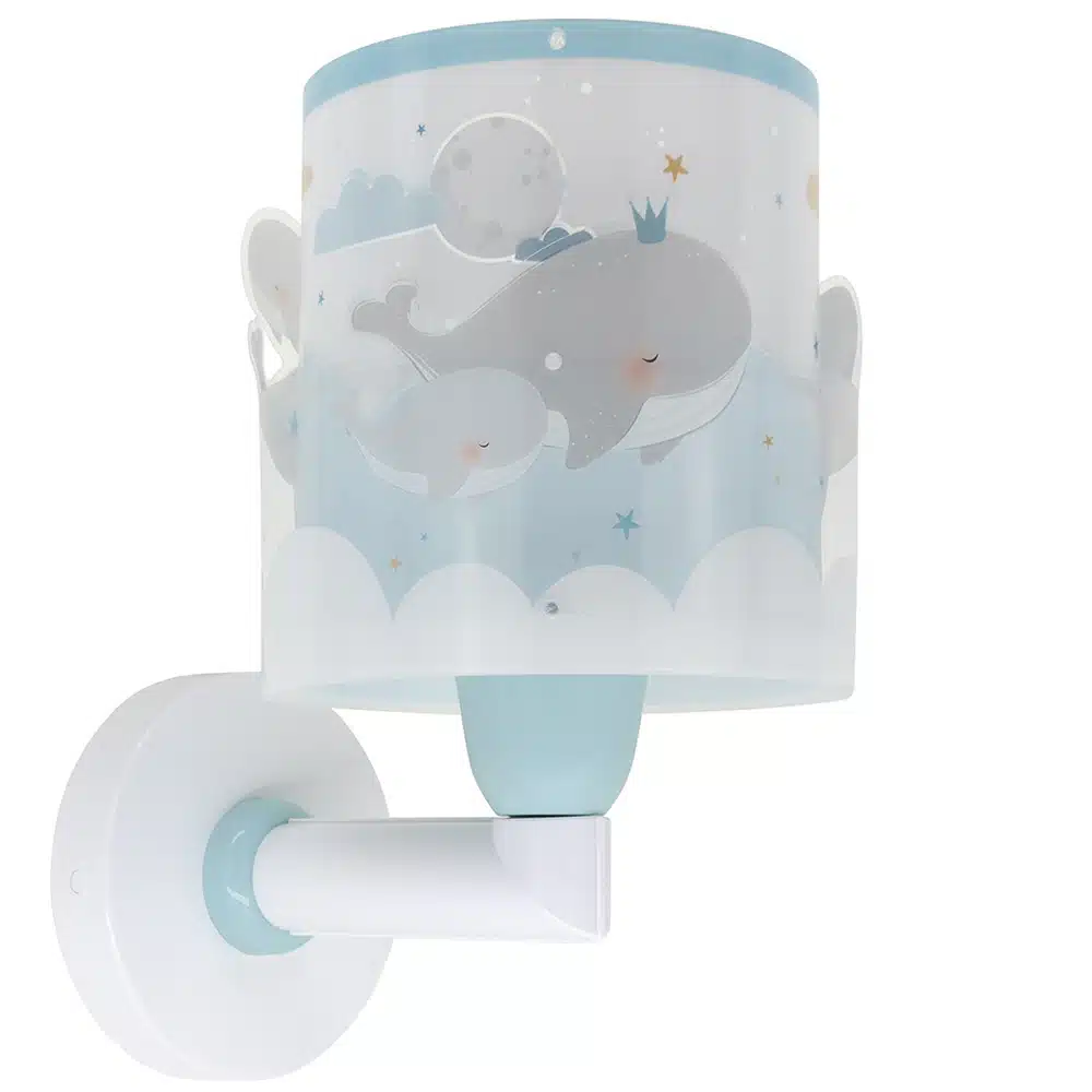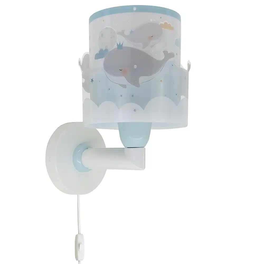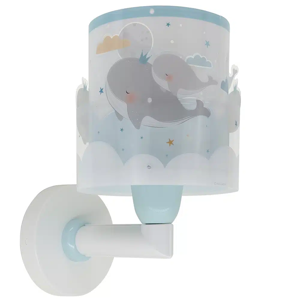 Απλίκα τοίχου με θέμα τη θάλασσα με χαριτωμένες φάλαινες, ιδανικά σχεδιασμένη για γενικό ή συμπληρωματικό φωτισμό. Φωτίζει και προσθέτει διασκεδαστικό χαρακτήρα και χαρούμενο άγγιγμα σε κάθε παιδικό δωμάτιο. Η Whale Dreams Blue απλίκα τοίχου είναι κατάλληλη ακόμα και για διάβασμα πάνω από το προσκέφαλο του κρεβατιού. Παρέχει ομοιόμορφο φως δημιουργώντας περιβάλλον που ενθαρρύνει τα παιδιά να επιδοθούν σε ότι τους αρέσει περισσότερο, διασκεδάζοντας ή δημιουργώντας! Η Whale Dreams Blue απλίκα τοίχου συμπληρώνει τα υπόλοιπα παιδικά φωτιστικά της συλλογής και είναι κατασκευασμένη εξ ολοκλήρου στην Ευρώπη.