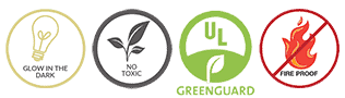 • Κατασκευάζονται από πολύχρωμο, μη τοξικό, αφρώδες ελαστικό καουτσούκ και μελάνι που φωσφορίζει